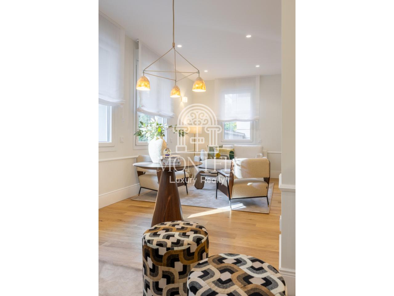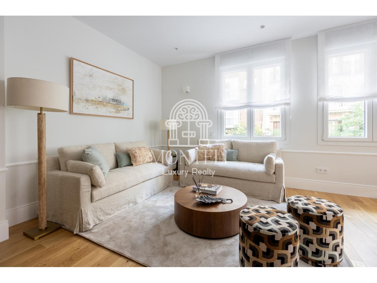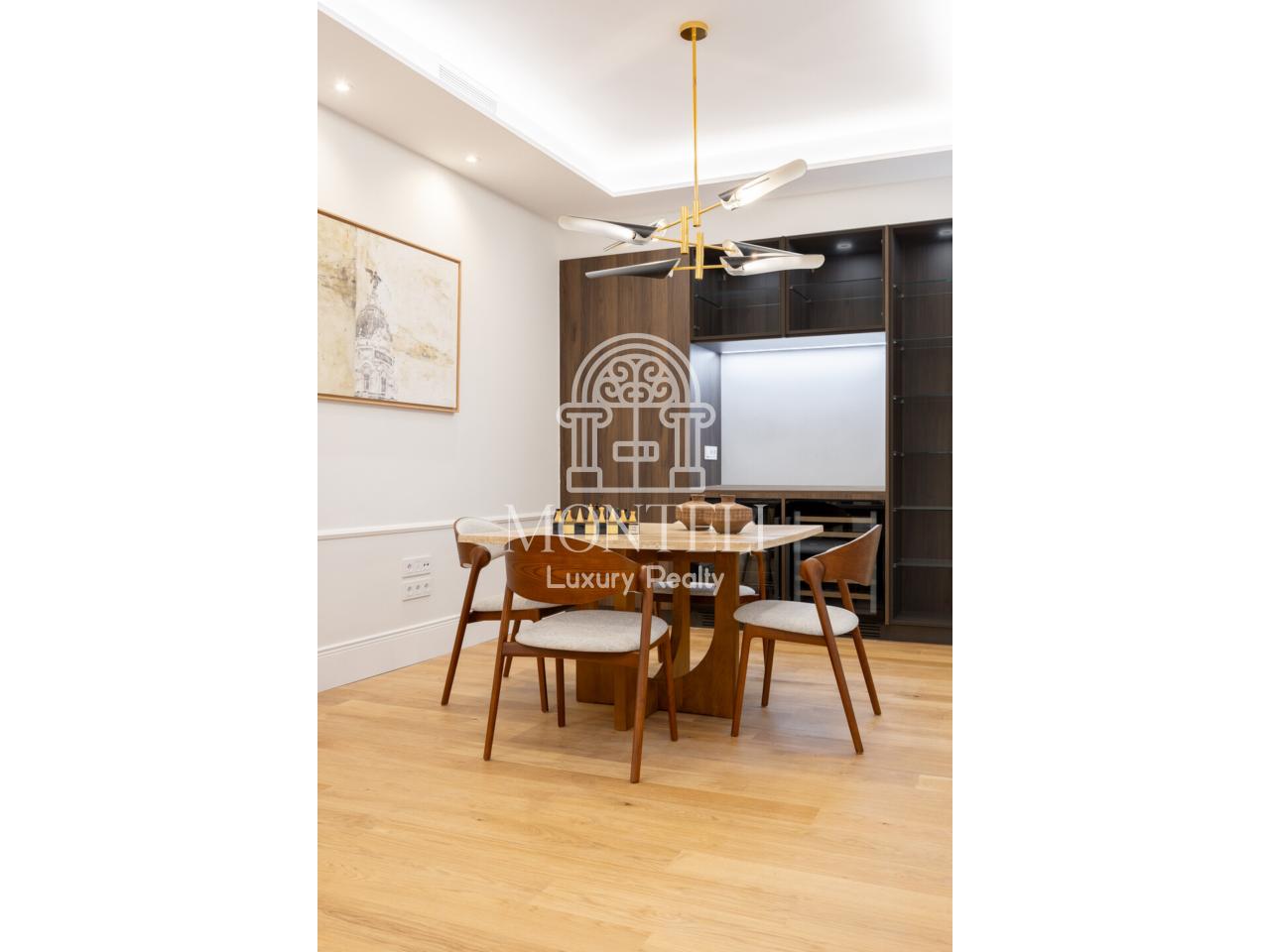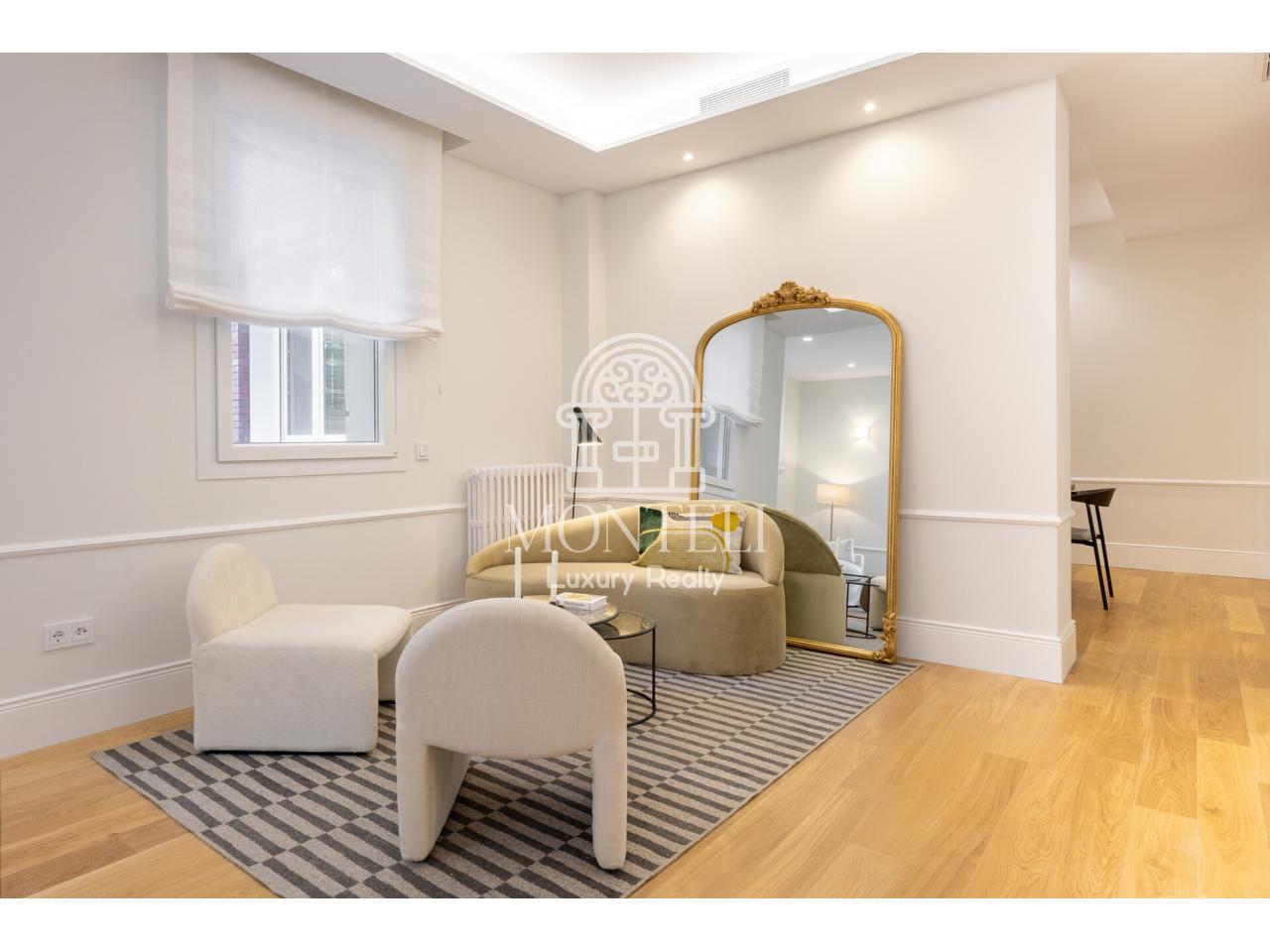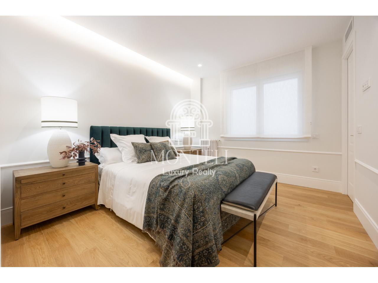El piso, integralmente reformado de diseño, cuenta con 251 metros cuadrados y es muy luminoso por sus 9 ventanas a la arbolada calle Don Ramón de la Cruz con orientación sur. Está distribuido en cuatro ambientes diferentes de salones, una zona de bar, comedor, cocina abierta, terraza, 3 dormitorios en suite, aseo de cortesía y lavandería.
