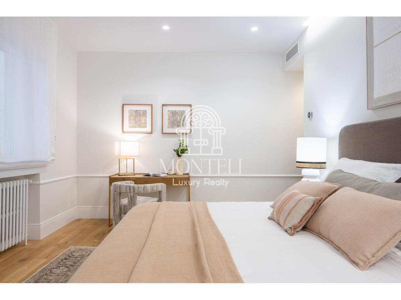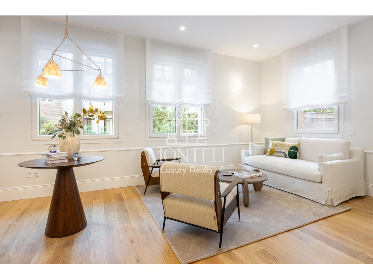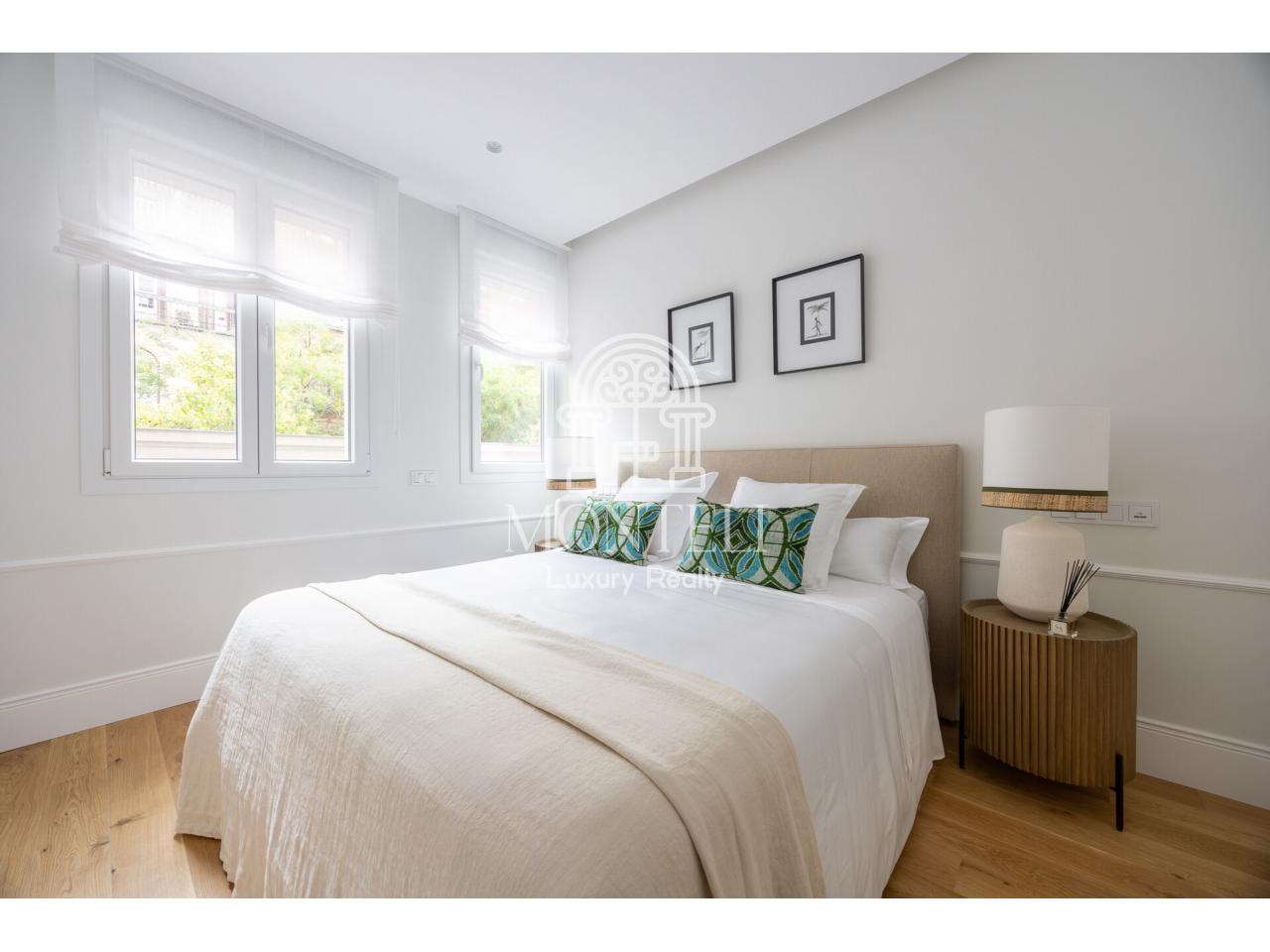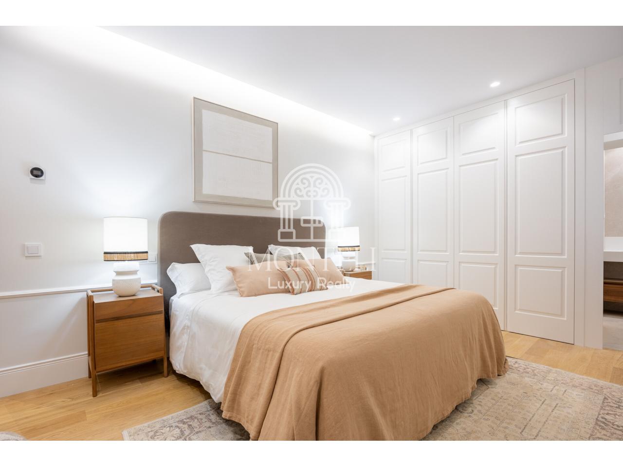 El piso, integralmente reformado de diseño, cuenta con 251 metros cuadrados y es muy luminoso por sus 9 ventanas a la arbolada calle Don Ramón de la Cruz con orientación sur. Está distribuido en cuatro ambientes diferentes de salones, una zona de bar, comedor, cocina abierta, terraza, 3 dormitorios en suite, aseo de cortesía y lavandería.