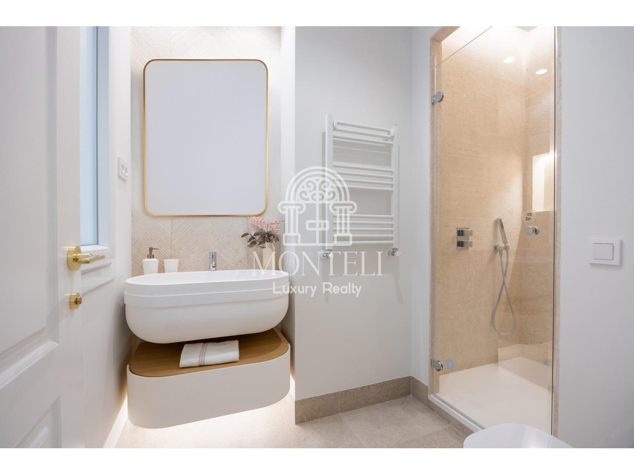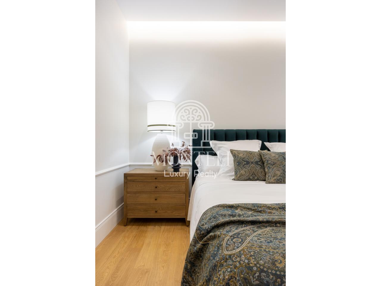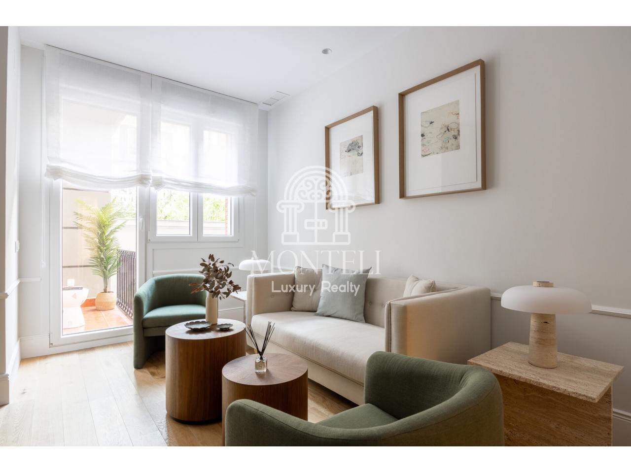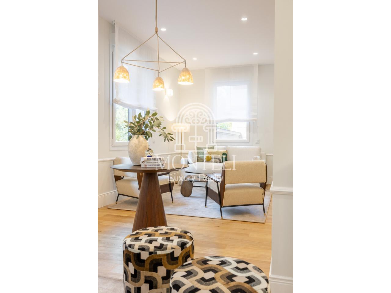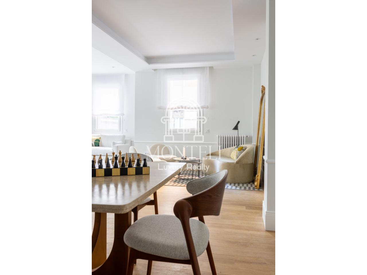 El piso, integralmente reformado de diseño, cuenta con 251 metros cuadrados y es muy luminoso por sus 9 ventanas a la arbolada calle Don Ramón de la Cruz con orientación sur. Está distribuido en cuatro ambientes diferentes de salones, una zona de bar, comedor, cocina abierta, terraza, 3 dormitorios en suite, aseo de cortesía y lavandería.
