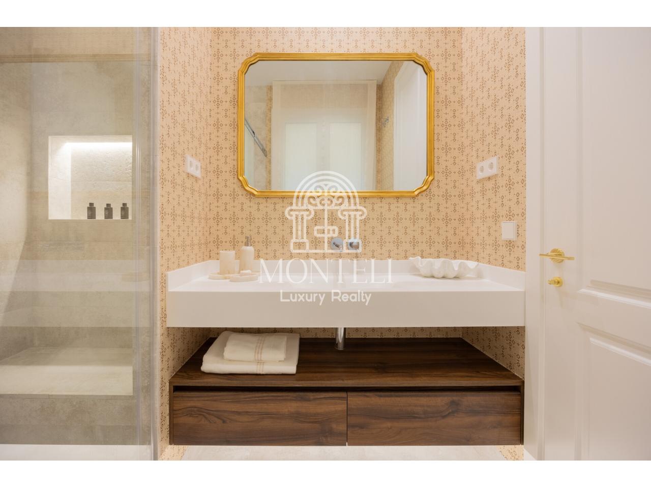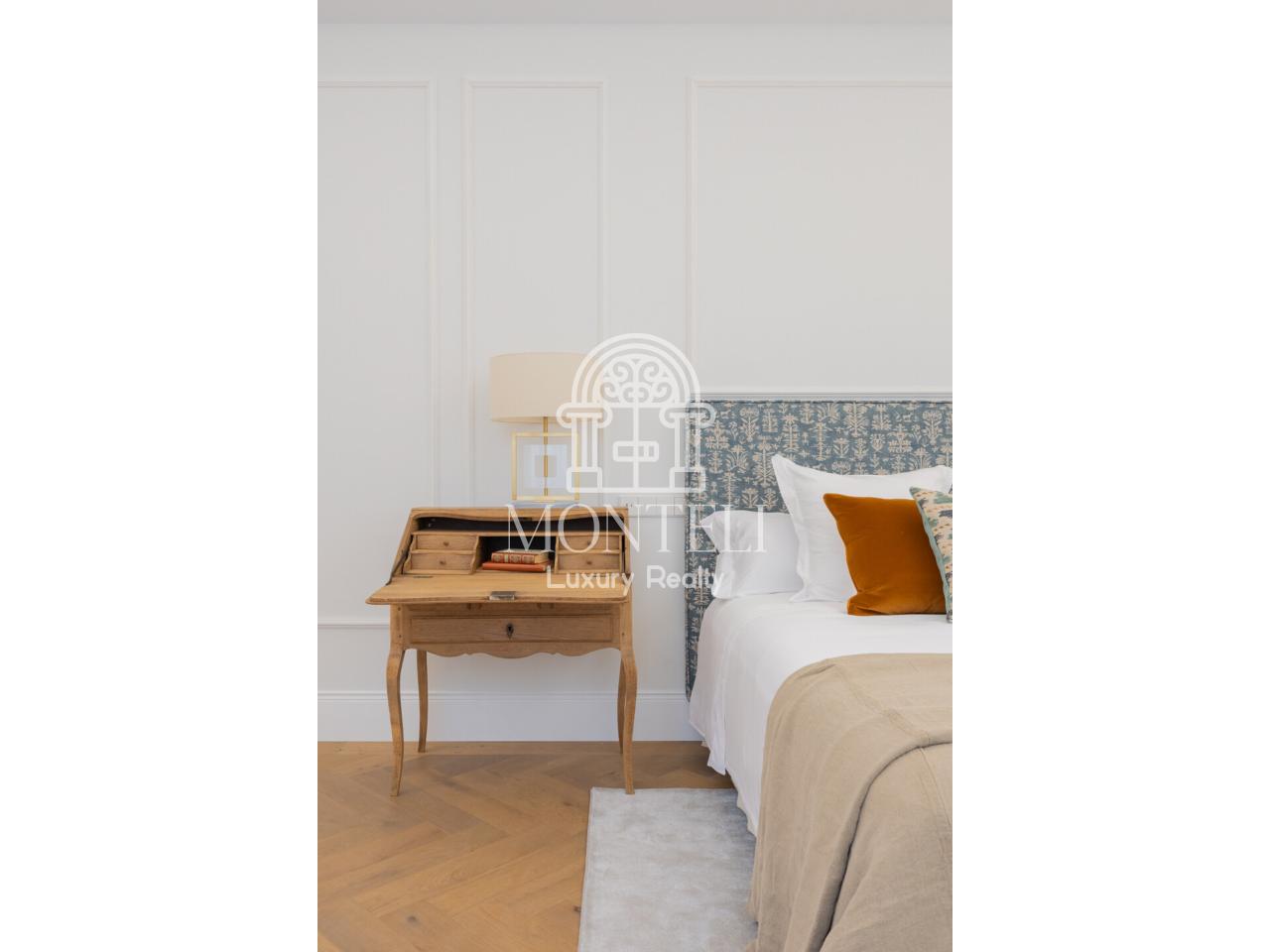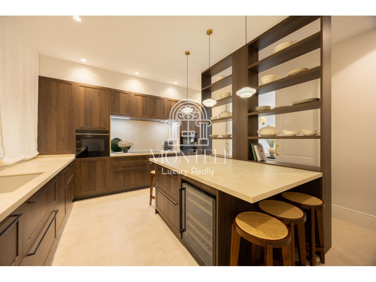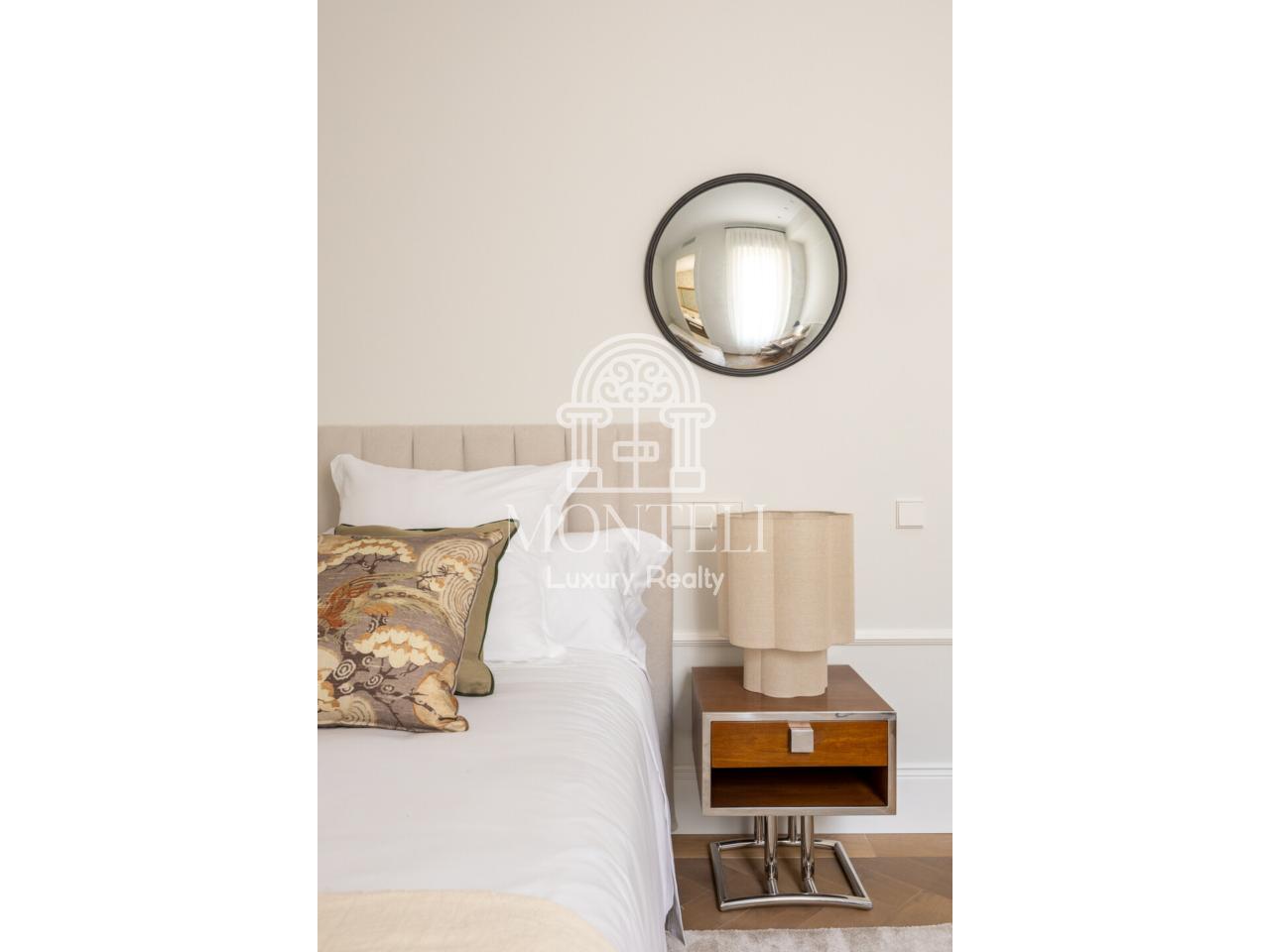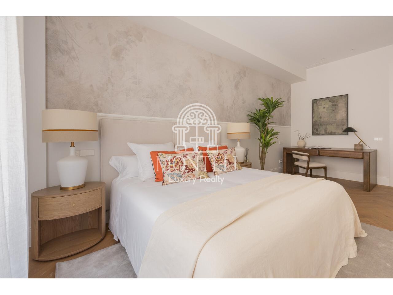 Ubicado en una primera planta con altura de segundo, el piso disfruta de unas espectaculares vistas abiertas a la Embajada de Italia, aportando una extraordinaria sensación de amplitud, luz y privacidad. Integralmente reformado de diseño, cuenta con 451 metros cuadrados distribuidos en tres elegantes zonas de salones, un amplio comedor, cocina semi-integrada y cuatro dormitorios en suite, destacando el principal con dos vestidores y dos baños.