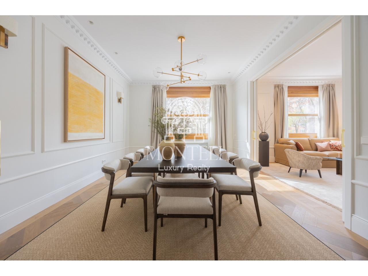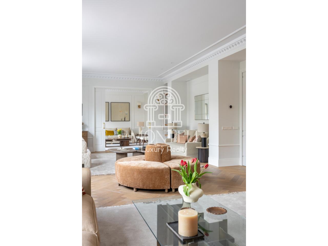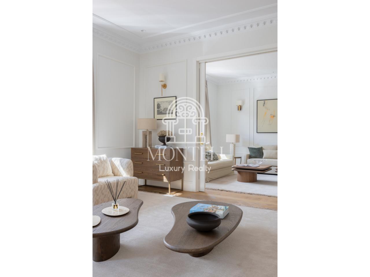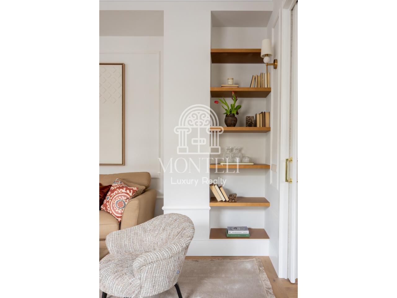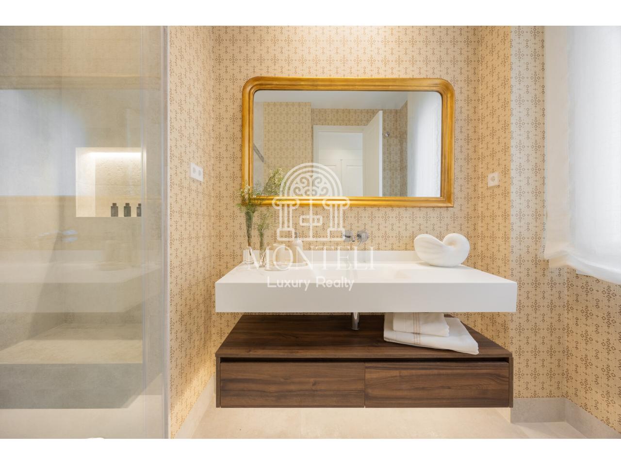 Ubicado en una primera planta con altura de segundo, el piso disfruta de unas espectaculares vistas abiertas a la Embajada de Italia, aportando una extraordinaria sensación de amplitud, luz y privacidad. Integralmente reformado de diseño, cuenta con 451 metros cuadrados distribuidos en tres elegantes zonas de salones, un amplio comedor, cocina semi-integrada y cuatro dormitorios en suite, destacando el principal con dos vestidores y dos baños.
