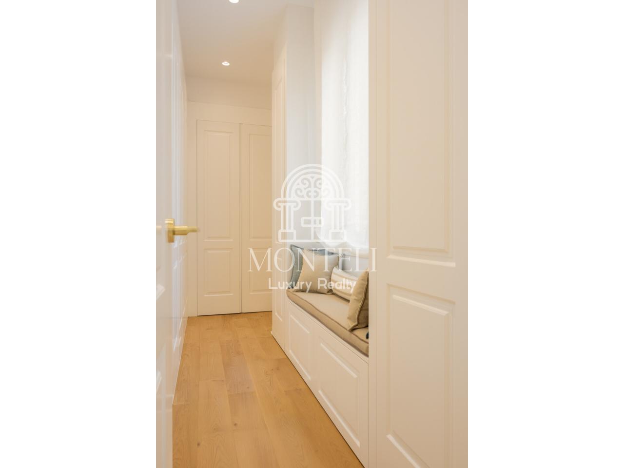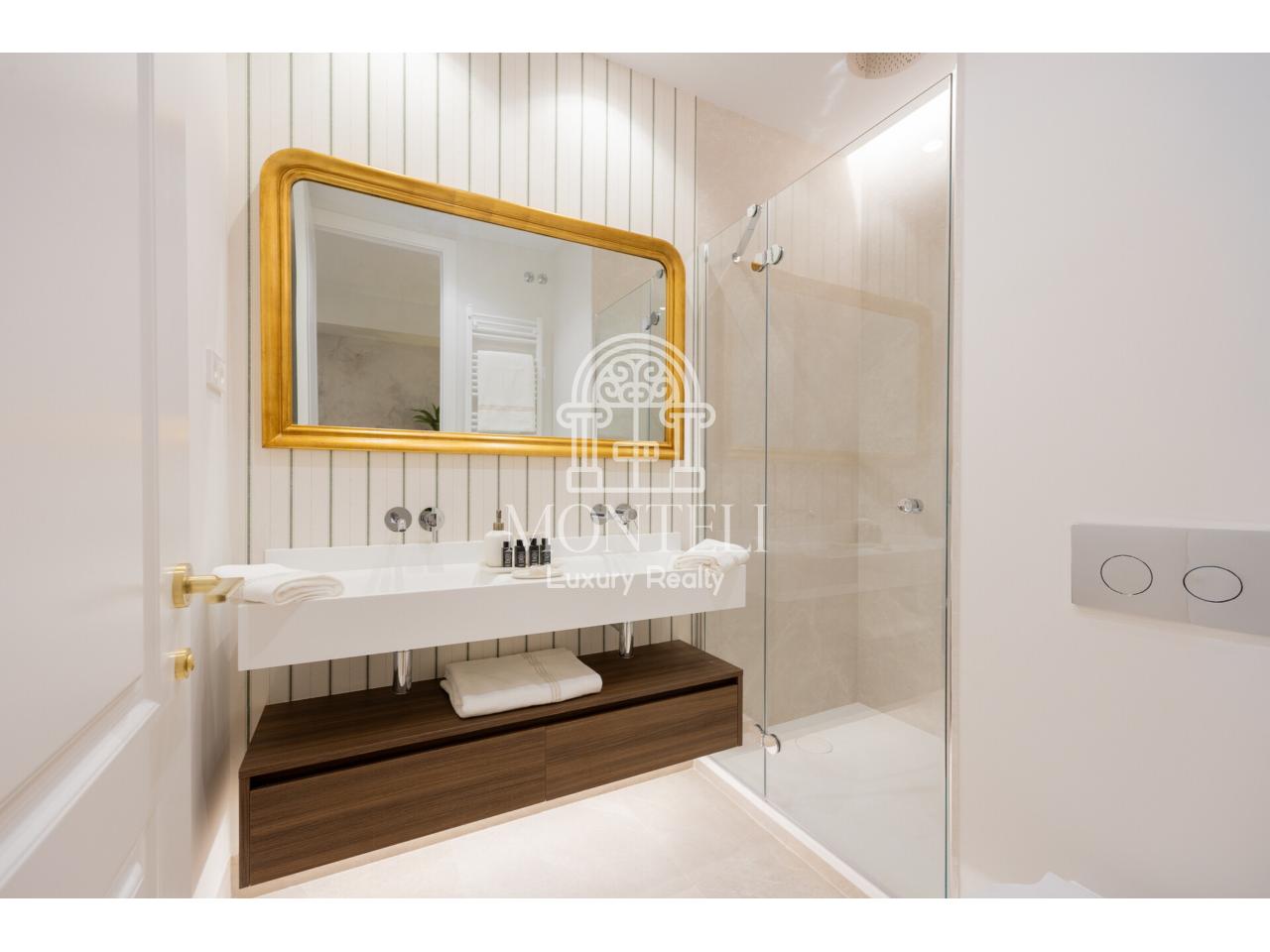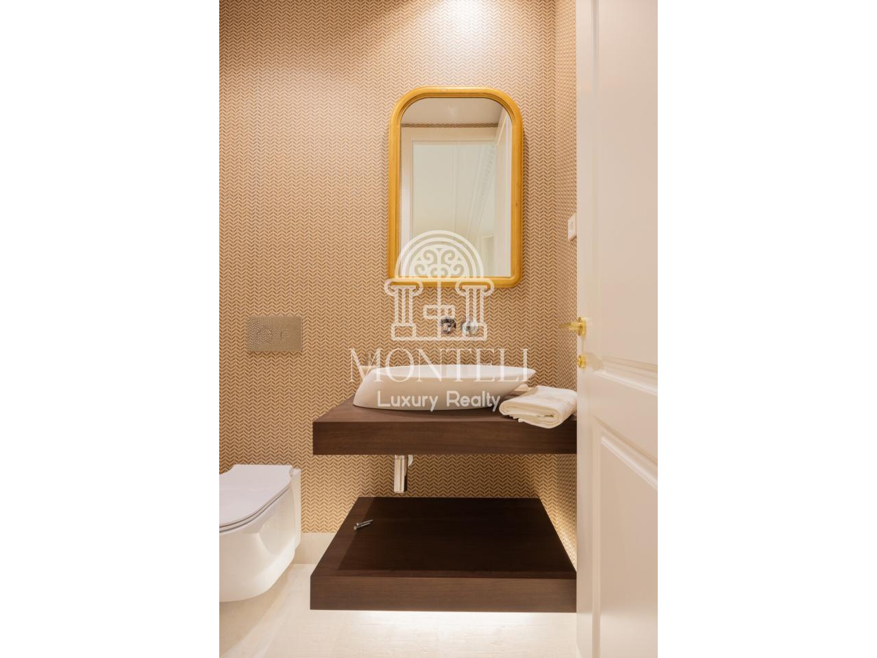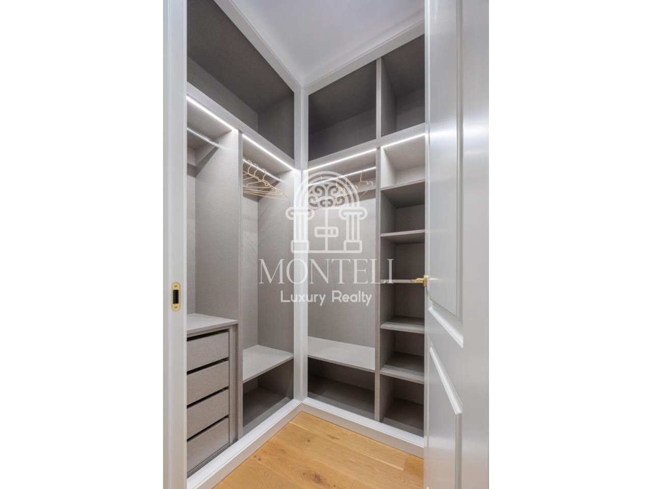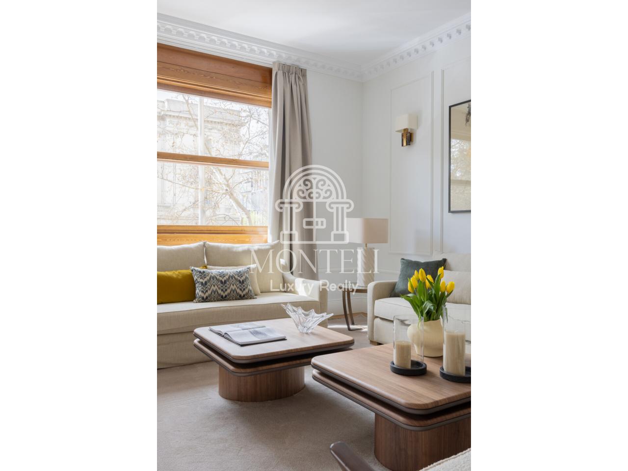 Ubicado en una primera planta con altura de segundo, el piso disfruta de unas espectaculares vistas abiertas a la Embajada de Italia, aportando una extraordinaria sensación de amplitud, luz y privacidad. Integralmente reformado de diseño, cuenta con 451 metros cuadrados distribuidos en tres elegantes zonas de salones, un amplio comedor, cocina semi-integrada y cuatro dormitorios en suite, destacando el principal con dos vestidores y dos baños.