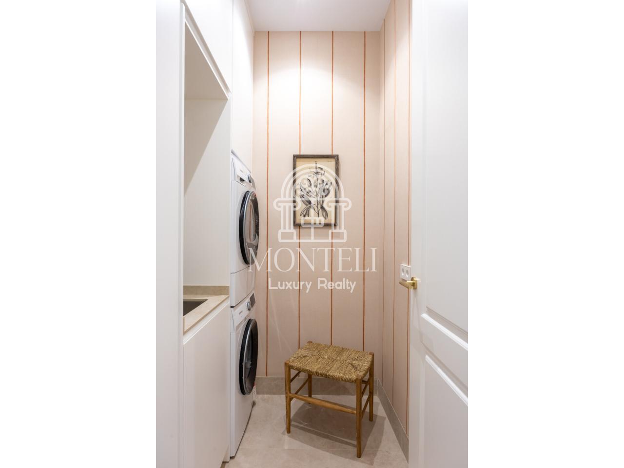 El piso, completamente a estrenar, se entrega totalmente amueblado y equipado, con calidades de primer nivel y una cuidada selección de materiales y acabados que refuerzan su carácter exclusivo.